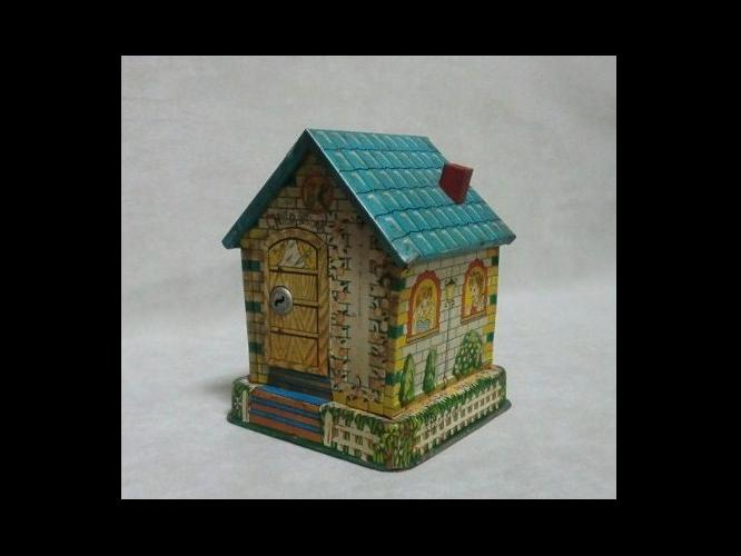 昭和レトロ 日本製 ニビ色のブリキ製 貯金箱 Child Bank