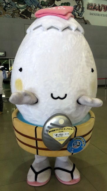 湯村温泉の名物の温泉卵がモチーフで湯村温泉の源泉「荒湯」の精霊で、夜な夜な宿泊の寝床に「湯たんぽ」を忍ばせる。