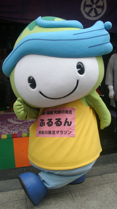 | 海部川風流(ふる)マラソンマスコットキャラクター。 頭の上の山と川がチャームポイントの妖精。 名前の由来は、海部川風流マラシンの「風流(ふる)」からイメージ。 第3回大会から会場で選手を応援している。 |