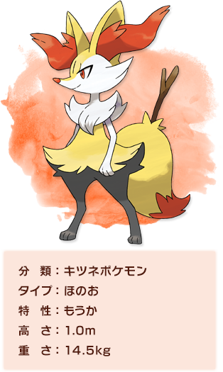 尻尾に挿している木の枝は、フォッコの大好物だ。テールナーに進化すると木の枝は食べなくなるが、尻尾に挿していると落ち着くようだ。バトルになると、尻尾から木の枝を引き抜き、摩擦で火をつけて戦うぞ!