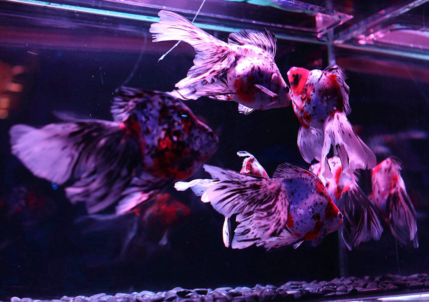 こうした撮影のコツで、露出を下げることがポイントです。今回も総ての金魚撮影でマイナス0.7のEVを下げて撮影しています。下げることにより黒い色が引き締まり、重厚さと余分なノイズを潰すことができます。
