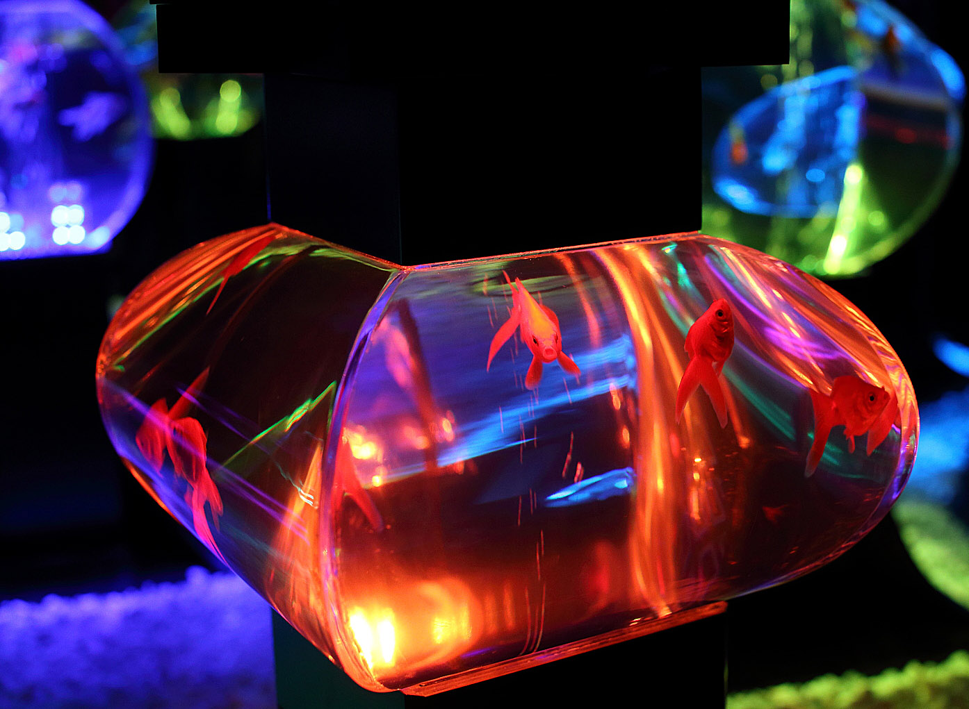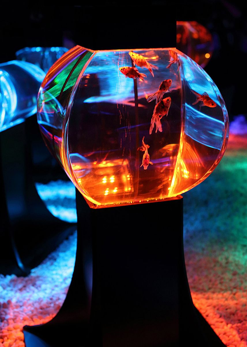 栄にありますテレピアホールで行なわれていますアートアクアリウム展の写真です。