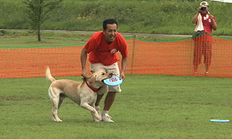 まさはる君が挑戦しているミニコーナー「ディスクドッグへの道」。