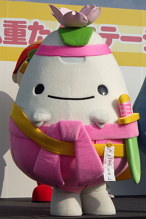 | 2013年2月、大河ドラマ「八重の桜」を応援し、町おこしにつなげるべく誕生。 復興の象徴「起き上がり小法師」をもとに桜の花をあしらっている。 背中に背負っている銃が命中した場所には数日後花が咲くという。街中が花畑の美しい街の誕生を願っている。 |