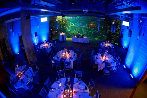 水槽に囲まれたスペースを貸し切って、披露宴会場に。