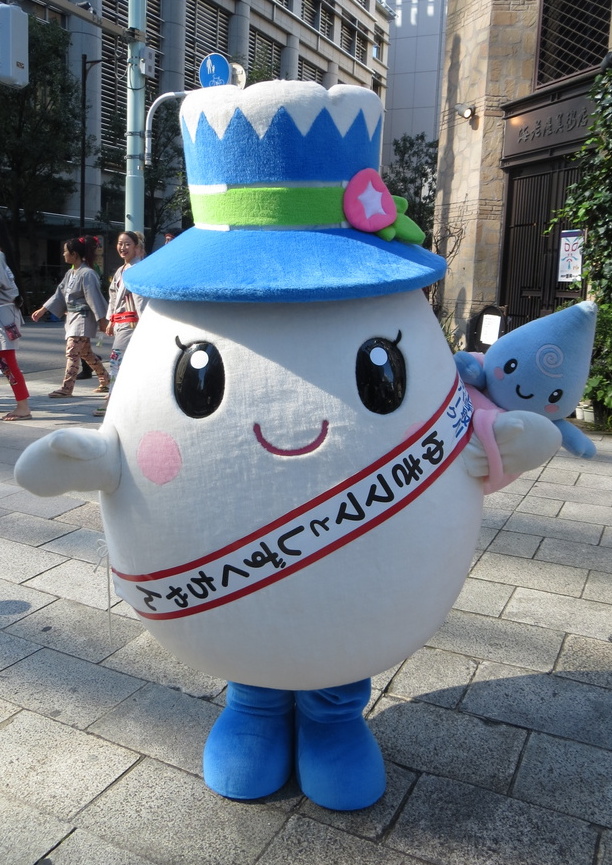 | 白山をイメージした帽子にあさがおの花。白山の雪でできた「ゆきママ」が、背中のリュックに雪解け水の「しずく」を背負い、白山手取川ジオパーク内を一緒に旅している。 1人でも多くの人に、故郷の素晴らしさを知ってもらいたいと思っている仲良し親子。 白山市観光特使。 (公式サイトより) |