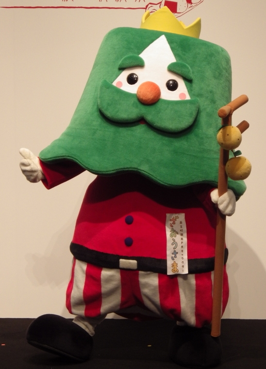 | 2013年4月、デスティネーションキャンペーンに合わせ誕生。 つぶらな瞳と豊かなヒゲをたくわえ、笑顔が憎めない愛くるしい王様。 蔵王に生まれ、蔵王にずっと住んでいる。 恥ずかしがりやで、森の奥でひっそりと過ごしているので、今までその存在を知る人はほとんどいなかった。 美しい風景を見ながら美味しいものを食べて、まったりと読書をしながら、時々昼寝。そんな自由で贅沢な毎日を過ごしている。 最近、太ってきたのを気にして運動不足解消のために森からよく出てくるようになった。 性格はとにかくゆったりマイペース。 やさしくて、動物たちに好かれている。とってもグルメで、美味しいものには目がない。 いつも紅白のパンツと黄色いマントしか着ない。ブルーベリー色のボタンが一番の自慢で、小さなところも手を抜かない。ヒゲの手入れには毎日一時間かけている。フルーツが実った杖は、お腹が空いた時に食べるためらしい |