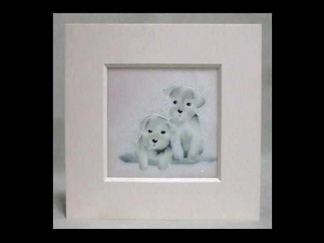 テリアの子犬 七宝画 額装 「H.S」? 右下にサインあり。