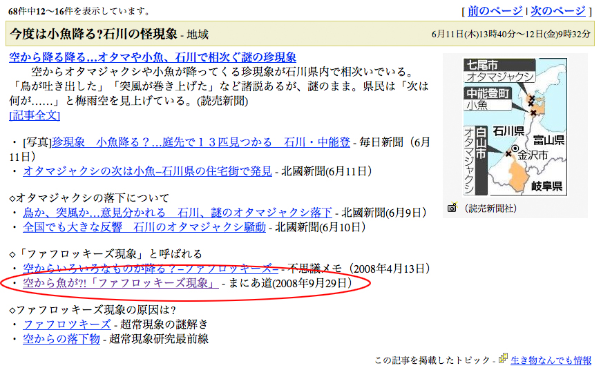 異なっていたり、その地方では生息するはずのない生物が降ってくるなど、