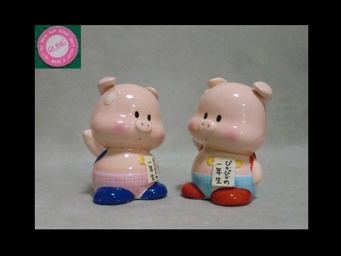 レトロ ぴかぴかの一年生 ブタ貯金箱 2個   検;内藤ルネ