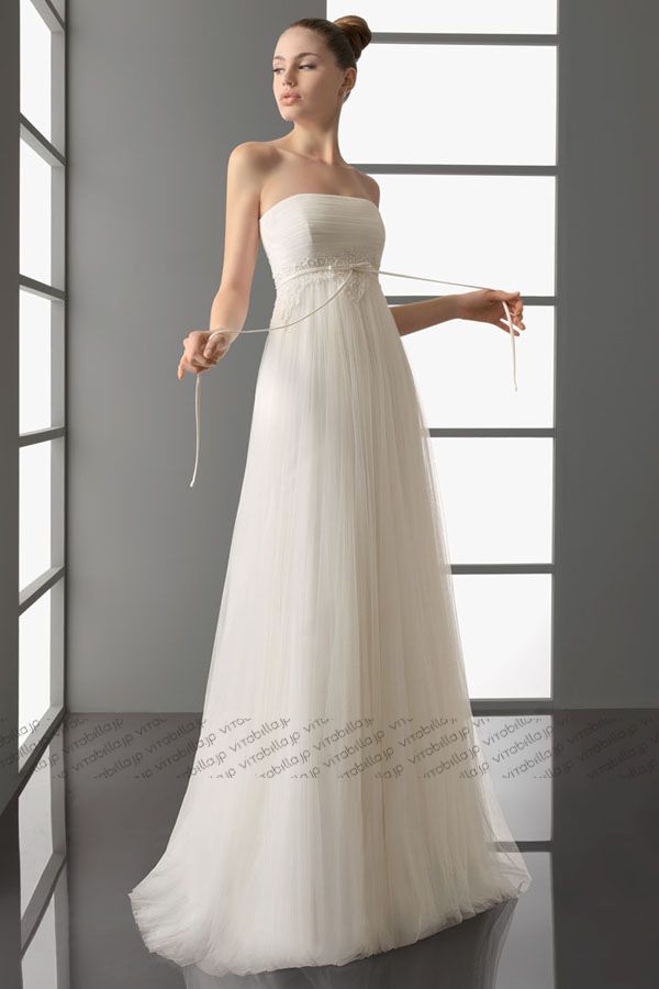 スカートにボリュームがいっさいなく、ボディラインに沿ったスタイルのドレス。すとんと裾まで流れるドレスは縦のラインが強調され、上品で落ち着いた雰囲気を醸し出します。マーメイドライン同様、背の高い方や細身の方によく似合います。ドレスがシンプルなのでアクセサリーやブーケ、小物などにこだわりたい方にはとくにおすすめ。小柄な方でも着こなし次第でよく似合います。また、裾が広がらないため空間の制限を受けにくいドレスです。あまり広くない会場や、レストランウエディング、カジュアルなパーティなどで動きたい方にもおすすめです。