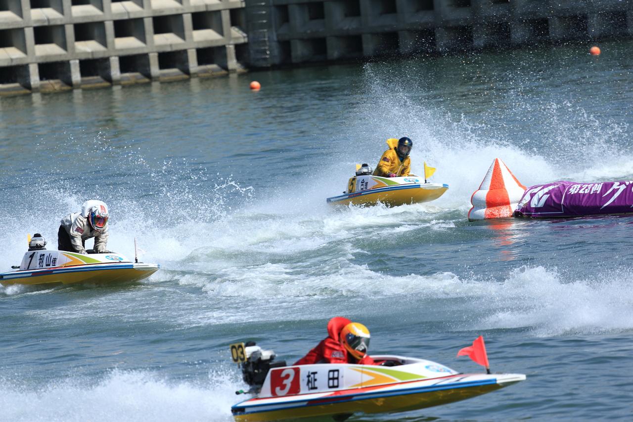 今までの経験と知識のみで撮影をしてみました。ちなみにこうした競艇は選手もしくはボートの撮影はは許可制になっているようです(常滑競艇はそうでした)。