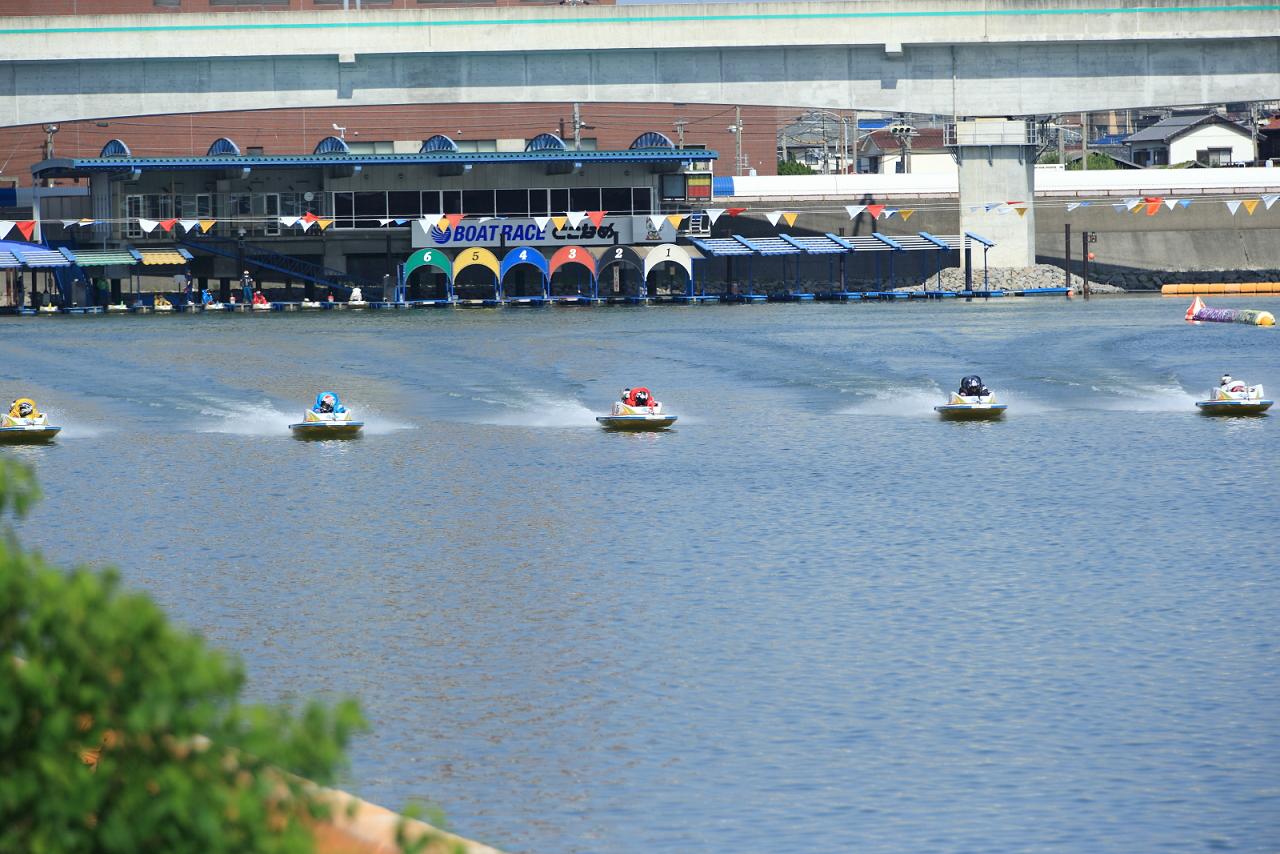 今までの経験と知識のみで撮影をしてみました。ちなみにこうした競艇は選手もしくはボートの撮影はは許可制になっているようです(常滑競艇はそうでした)。