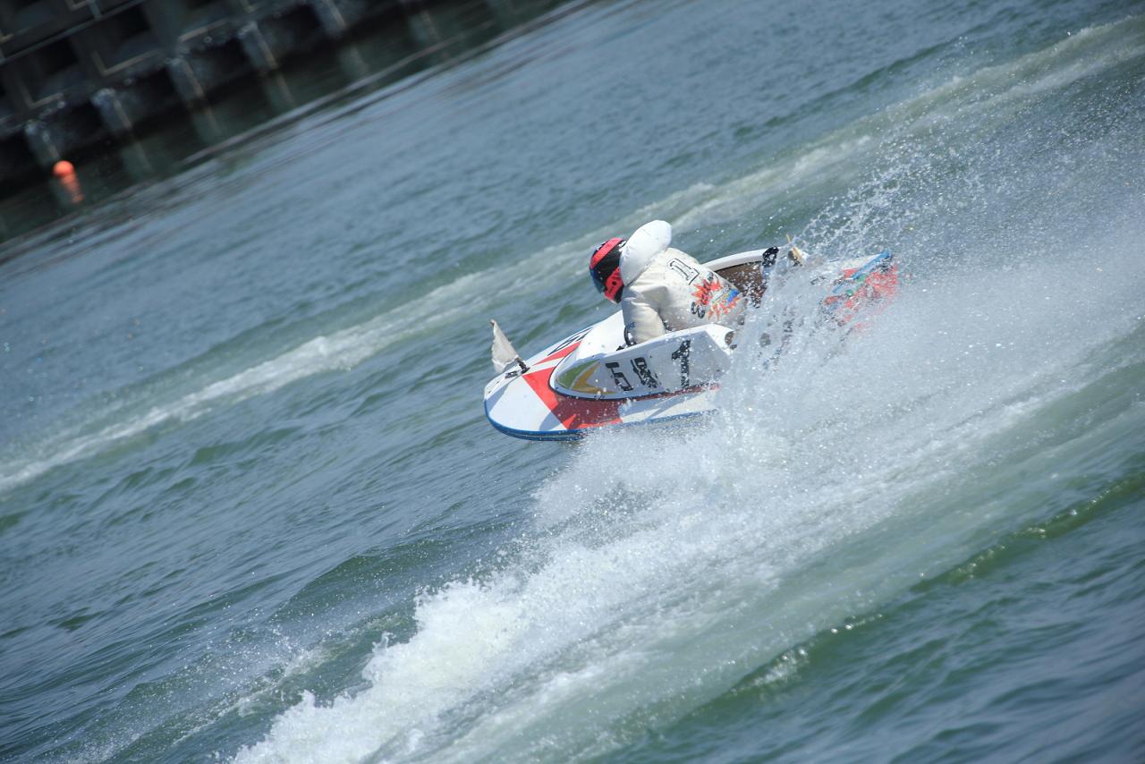 今までの経験と知識のみで撮影をしてみました。ちなみにこうした競艇は選手もしくはボートの撮影はは許可制になっているようです(常滑競艇はそうでした)。