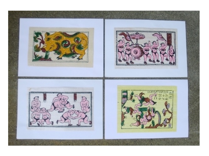 ベトナム北部ドンホー村 ハンドメイド ドンホー木版画