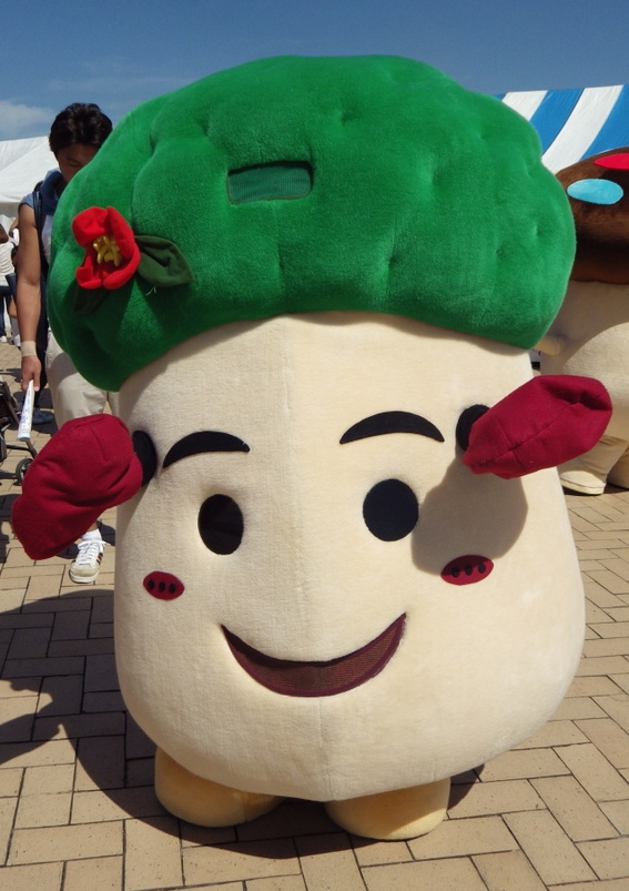 | 珠洲が全国に自慢できる、場所・人・モノを見つけて、アピールする見附島の妖精。 手は、大納言小豆、足は、大浜大豆、頭には市の花「椿」をつけている。 2011年11月に誕生した。 |