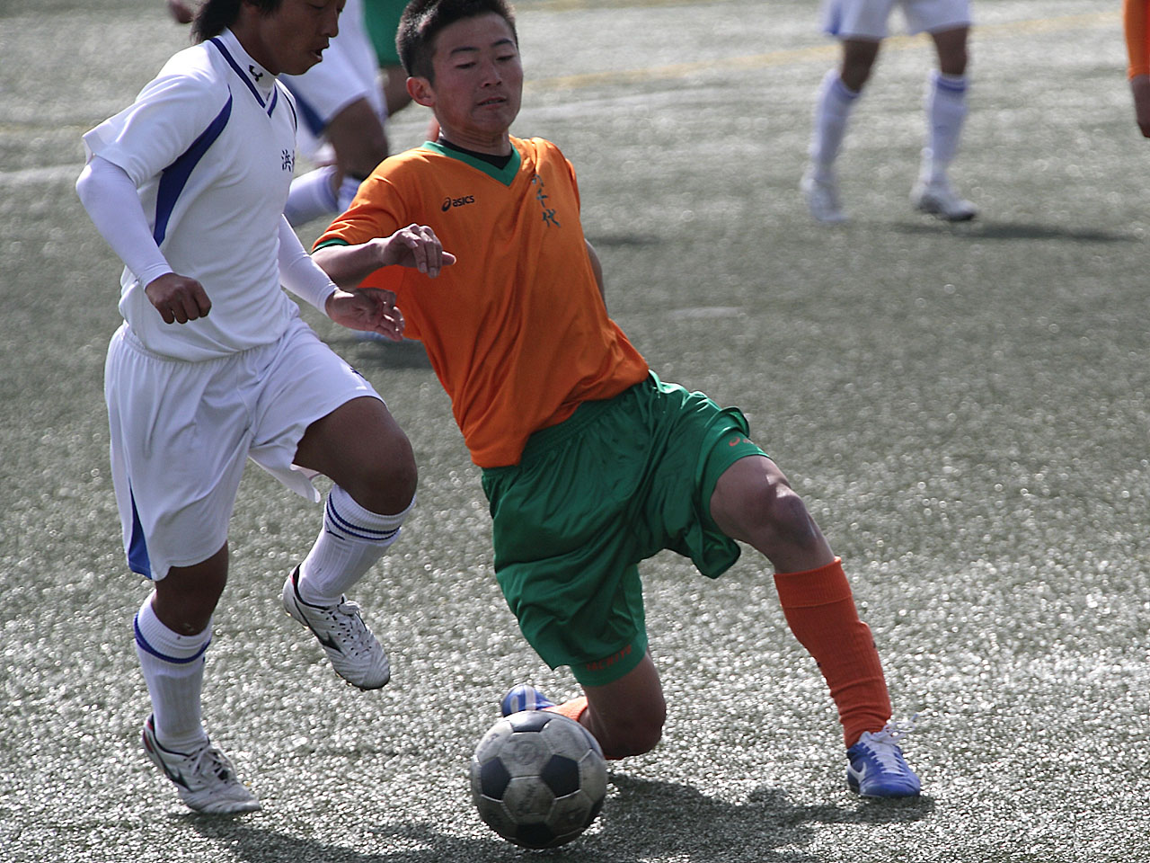 今回のサッカーの写真はすべて高速連射で撮影をしています。ここぞと思うシーンで秒間12枚の連射をしています。ですので、これら掲載されている写真は20枚前後から一番ピントを合っている写真を掲載しているのです。