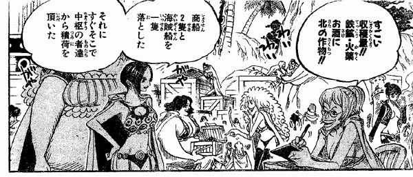 九蛇海賊団はアマゾン・リリーにて大人気で憧れの的ですね。外海から九蛇海賊団が物資を調達して来るようです。