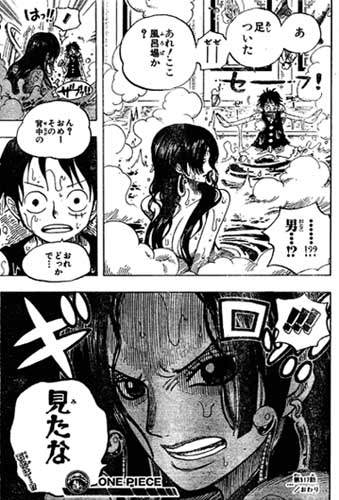 一方ルフィは、海賊船を もし借りれてもナミがいないと漂流してしまう事に気付き、偉い人にシャボンディ諸島まで送ってもらうために九蛇城へ潜入!