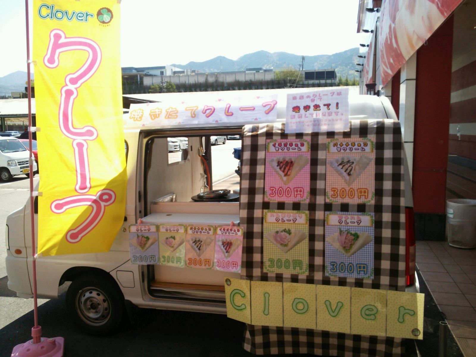 | クローバークレープ ・クレープ イチゴチョコ生クリーム、バナナチョコ生クリーム、ハムポテサラクレープ、ツナハムクレープ・・・全て焼きたて! 某老舗で修行を積んだ職人が作る極上クレープを召し上がれ。 | |