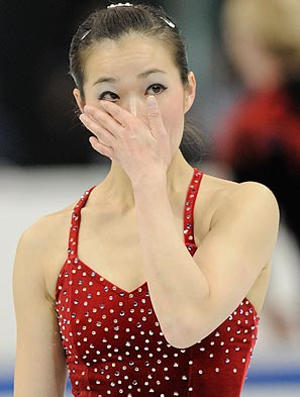 2008年の全米選手権演技終了後、ひざまずいたジョン・ボルドウィンは