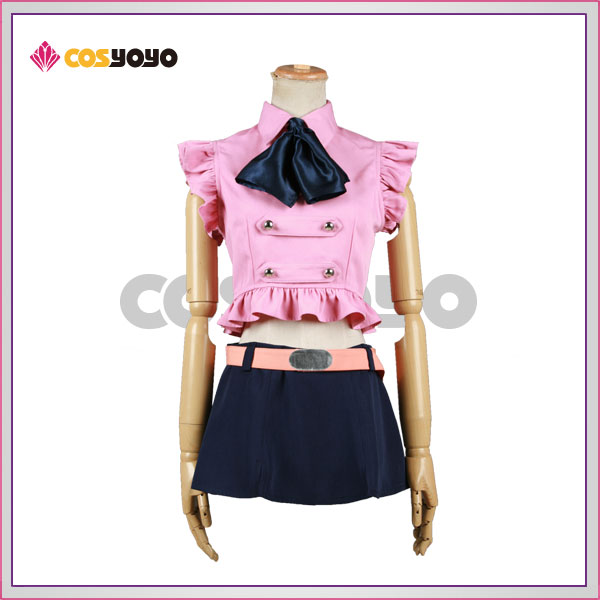 10月新番アニメ七つの大罪の主人公 エリザベス・リオネスのコスプレ衣装です。フリル付きの袖口と裾がポイントの上着はピンクで、袖なし仕様。フロントには飾りのボタンが付けています。ショートパンツは紺色で、ベルト付きです。リボンは光沢のあるシルク素材で製作。ソックスも用意しております。