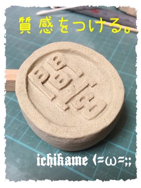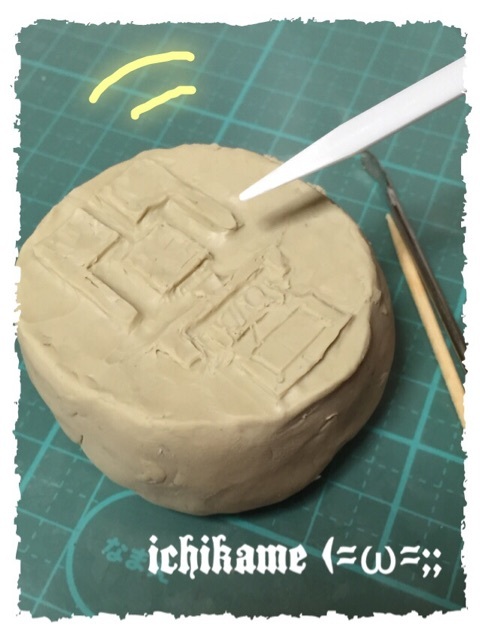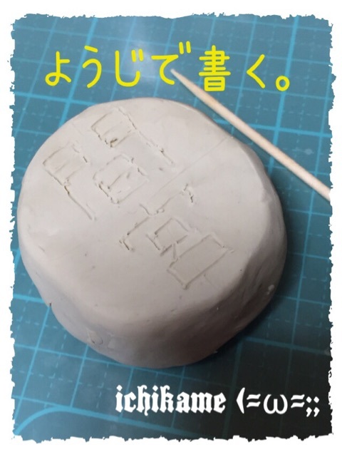 消しゴムスタンプを掘るときのような感覚で、粘土から文字を浮き上がらせマース♪