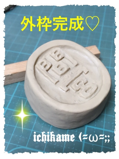 文字が複雑なので、油粘土で原型を作ってシリコンで型取りすることにしました。