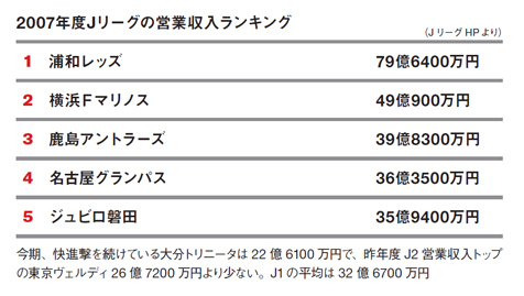 原因のひとつに、営業収入が最高の浦和レッズが約79億円、