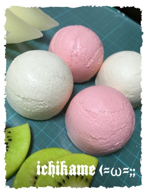 (左下のピンクの寒天を作るときは、レジン用着色料でピンク色をつけてから絞りました!)