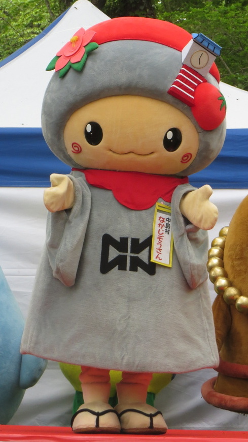 | 平成26年7月デビュー。中島村マスコットキャラクター。 村の指定文化財「汗かき地蔵」がモチーフ。頭には、村の花「サツキ」と特産品の「トマト」、音楽プロデューサー小室哲哉さん寄贈の「ヨカッペ時計」を載せている。 |