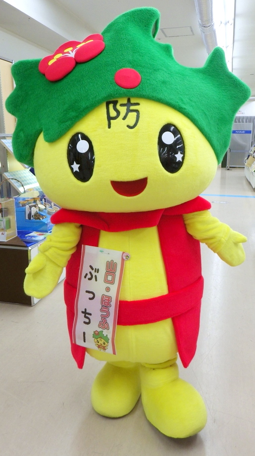 | 2013年12月にデザイン決定した防府市観光マスコットキャラクターで防府市の花の妖精。 緑の髪型は山口県をイメージし、防府市の位置を示す赤丸と「防」の字.。体には防府天満宮の鳥居をかたどっている。 |