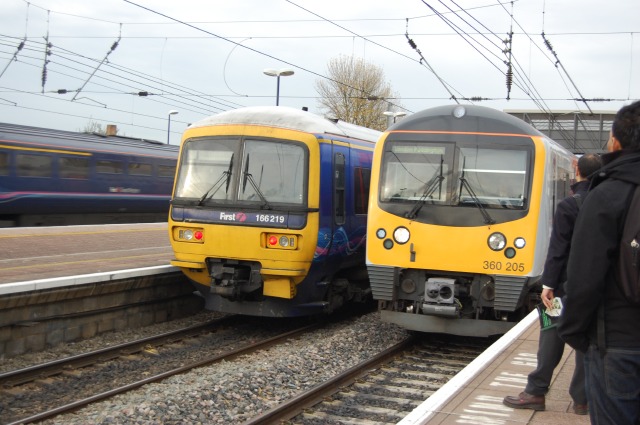 その後、ファーストグレイトウェスタン(FGW)のディーゼルカー(写真の左側)が