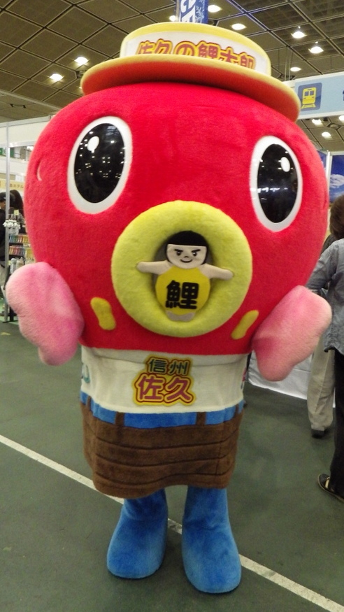 | 佐久市の恒例イベント「佐久バルーンフェスティバル」が20回を迎えた際に作られたイメージキャラクターのシェイプドバルーン「佐久の鯉太郎」をかたどり平成24年にデビュー。 泳げないが空を飛べる。好きなたべものは佐久の名産の鯉のあらい、酒、プルーン、米、ケーキ。 口癖は「サクニコイ」 |