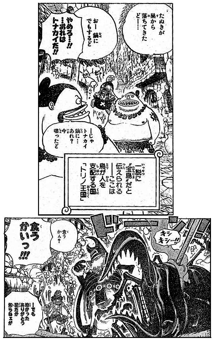 チョッパーは南の海の鳥が人を支配する国「トリノ王国」 怪鳥に食われそうになったところを逃げて今度は人間に食われそうに!