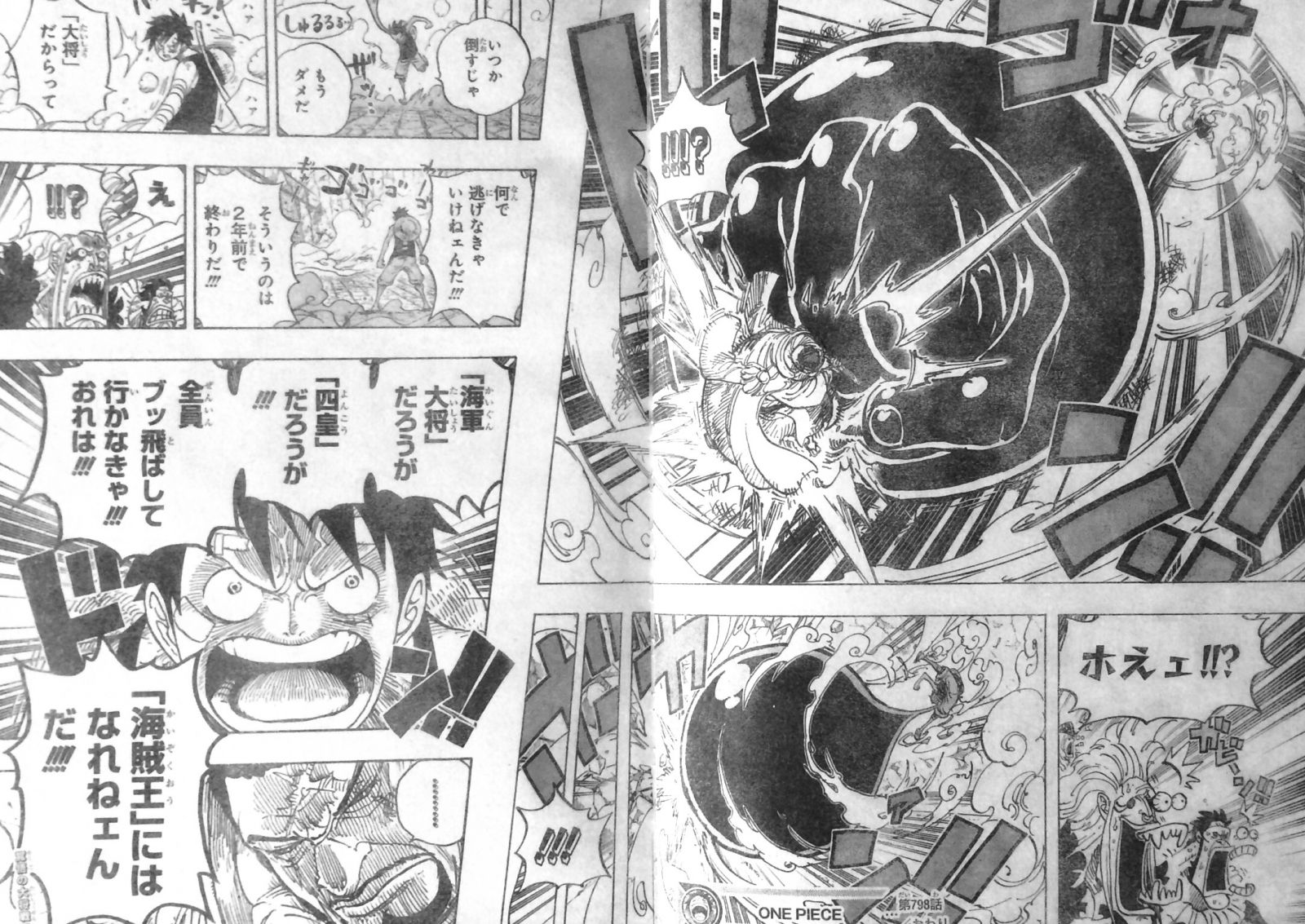 突如空へ飛んでいくドレスローザ中の大量のガレキ!海軍大将藤虎がガレキを東の港の上空へ集め、海賊達を狙います!海軍全部隊を東の港から撤退させ安全な場所へ移動するよう命じた中将バスティーユ!ローとルフィも東の港に到着!ルフィは藤虎をかわすようバルトロメオに言われましたが、自分を麦わらと認識している事を確認後、殴ると予告しパンチをくらわせました!目の不自由な敵にフェアなルフィ!大将だからって逃げるのは2年前で終わりだ、海軍大将だろうが四皇だろうが全員ぶっ飛ばして行かなきゃ おれは海賊王にはなれねェんだと真っ向勝負を挑むルフィ!本当に藤虎と戦う事になるのでしょうか?