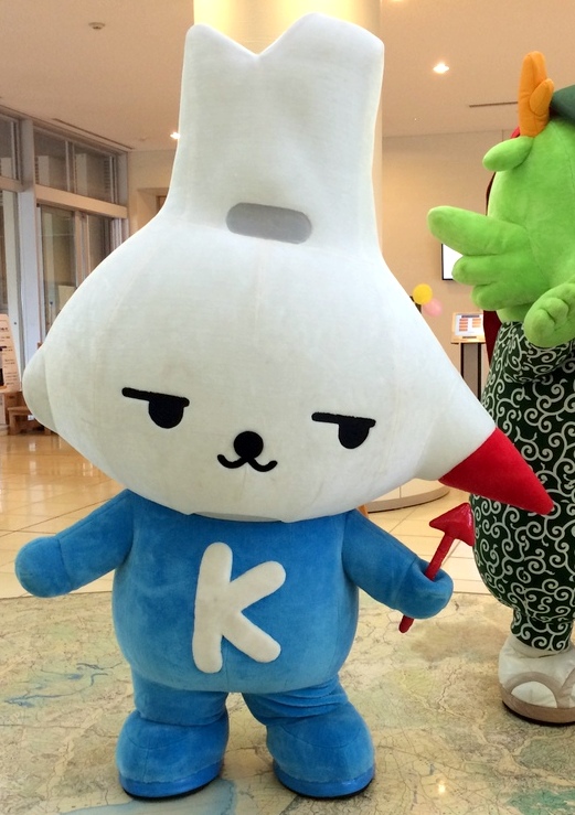 | 神栖市ってどこ?と知らない人が多い中,茨城県の頭の形で神栖市の位置を指し示し,茨城県のココ!です。日本のココ!です。と全国に神栖市を強烈にアピールするイメージキャラクター 神栖市の場所をすぐに指し示せる。好物はナタデココ。 |