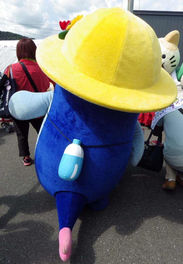 | 2013年8月12日に国内観測史上最高気温を記録した四万十市のキャラクター。 暑さと記録更新の騒ぎでついつい岩陰から出てきてしまった。熱中症対策で麦わら帽子をかぶり、冷たい水の入った水筒をいつも持ち歩いている。 |