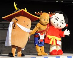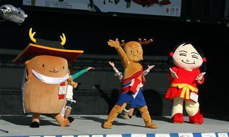 奈良県で開かれる平城遷都1300年祭の公式キャラクター「せんとくん」と、