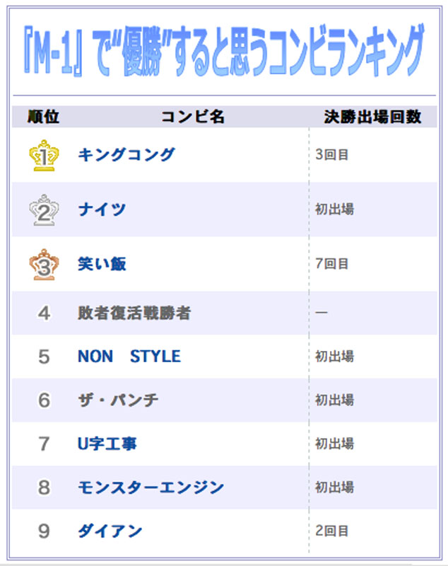※順番はネタを披露する順番です以上の8組と敗者復活の1組で12/21(日) に行われる決勝大会を行います!