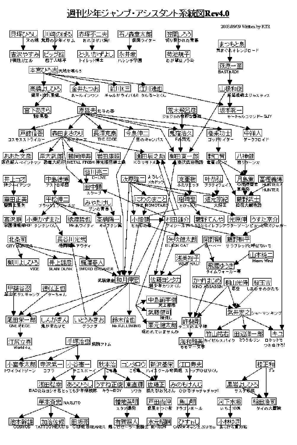 ジャンプで活躍している作家さんがデビュー前にどの作家さんの下でアシスタントをしていたか