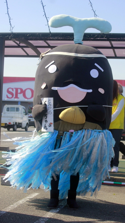 | 2010年に富田二丁目で毎年8月に開催される「鯨船祭」をモチーフに誕生。2013年に有志の手作りのきぐるみが誕生している。 |