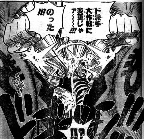 →525話 “海底監獄インペルダウン”ガープ、ドラゴン、エース、ルフィは血縁!バギー、アルビダ再登場!→527話 “紅蓮地獄”ルフィの腕輪はキャプテン・ジョンの財宝を示すトレジャーマークだった!