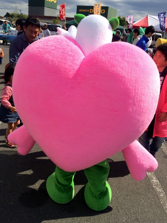 着ぐるみは平成27年に作成。村外にも活動の場を広げている。