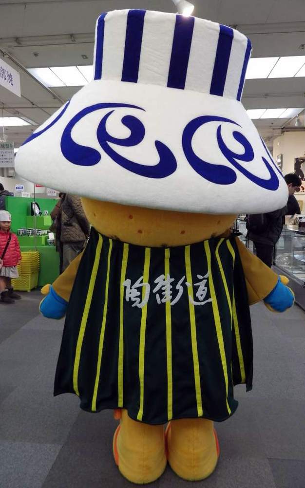 | 平成22年誕生。砥部町の特産品(砥部焼・みかん)を使い、砥部陶街道53次を巡る旅人をイメージ。 |
