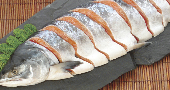 時知らずといわれます。鮭の旬である、秋以外に採れる鮭で、まだ卵巣・精巣が成熟しておらず、体に脂がのっています。