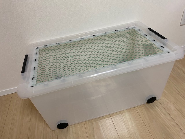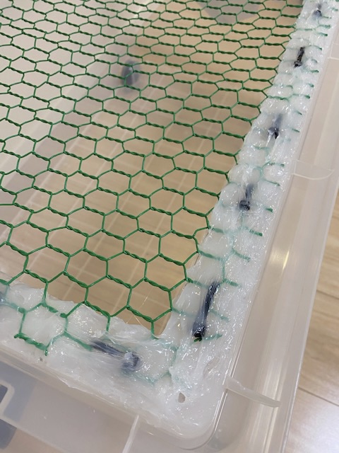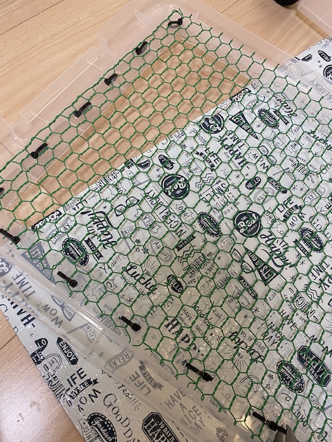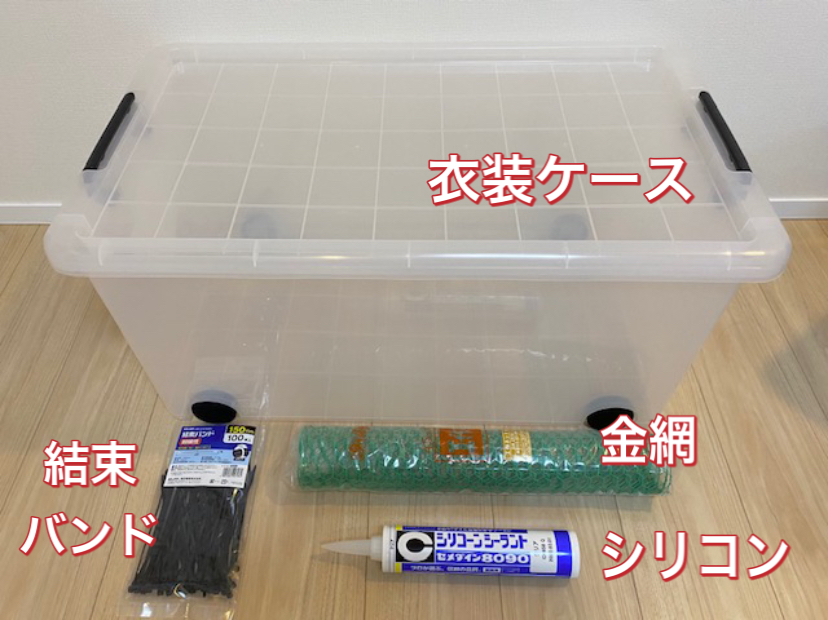 材料がこちら。衣装ケースのふたを切り抜き、金網を取りつけます!