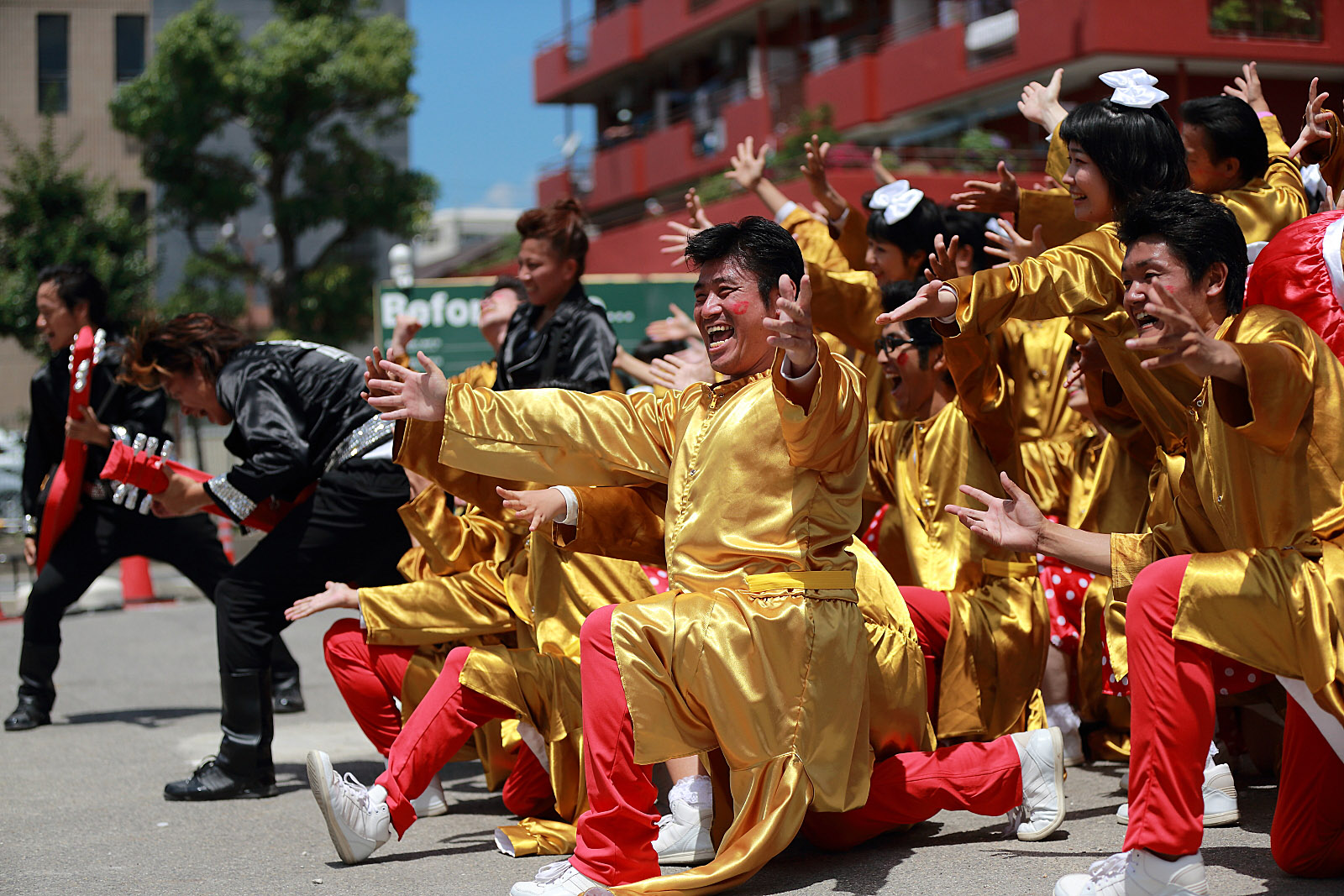 よさこいを練り歩く。他にもきれいな飾り付けや、メイン会場以外でも多くのイベントが