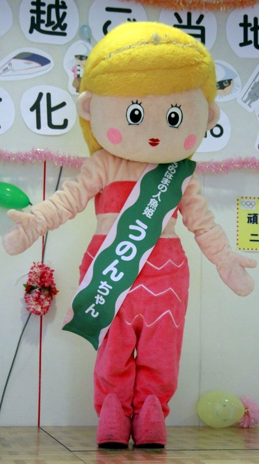 | 大潟区に伝わる人魚塚伝説がモチーフ。 地元で開催される海にまつわる「地引網」等各種イベントの参加はもちろん、東京など県外にも出張してPR活動を行う。 |