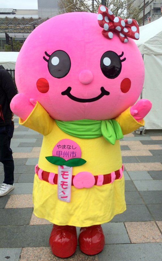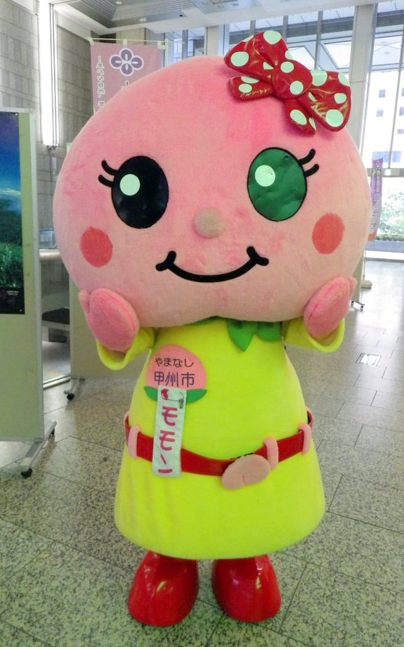 | 特産のももをモチーフとした甲州市の観光キャラクター。桃農家の箱入り娘。 平成25年4月に誕生した。ぶどうをモチーフとした「ブードくん」という仲間がいる。 |